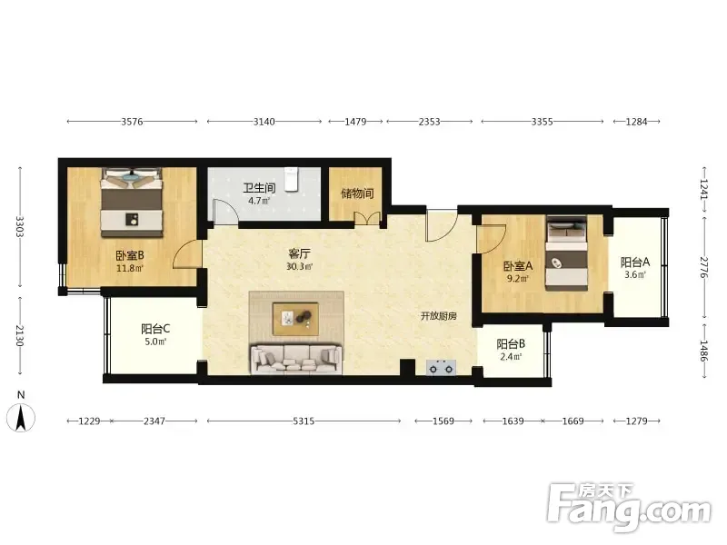 2室1厅/77.29㎡