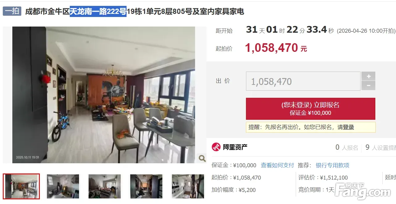 二手房¥零¥中介费全成都资产处置收1%(成功付费)105 万