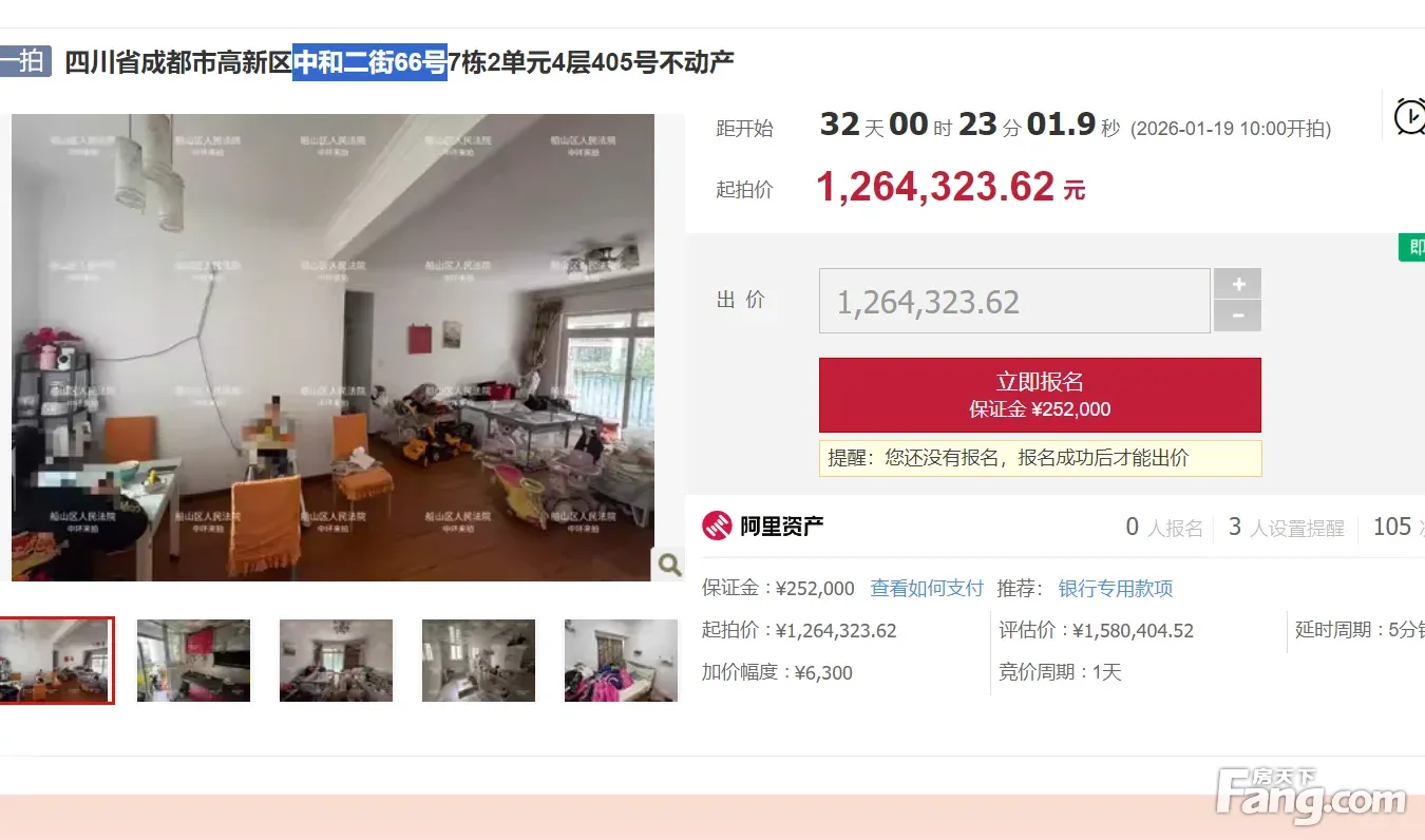二手房¥零¥中介费全成都资产处置收1%(成功付费)126.48 万