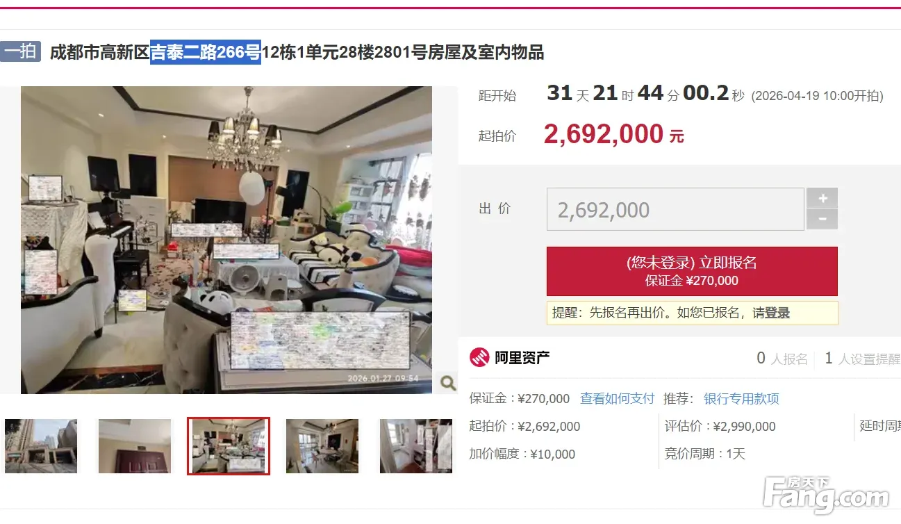 二手房¥零¥中介费全成都资产处置收1%(成功付费)269 万