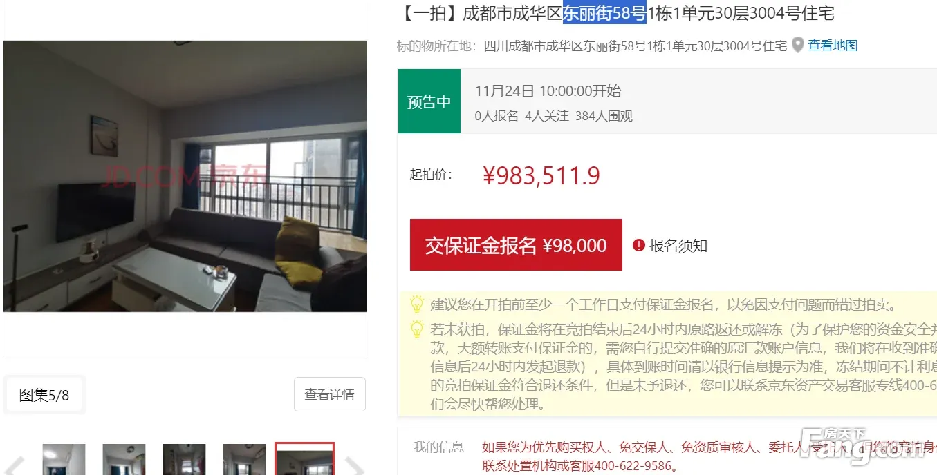 二手房¥零¥中介费全成都资产处置收1%(成功付费)98.38 万