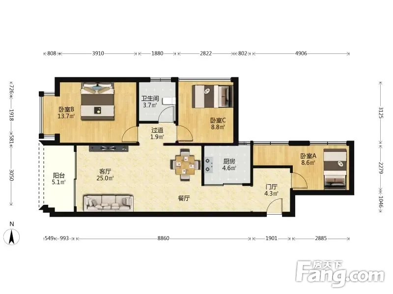 3室2厅/86.0㎡