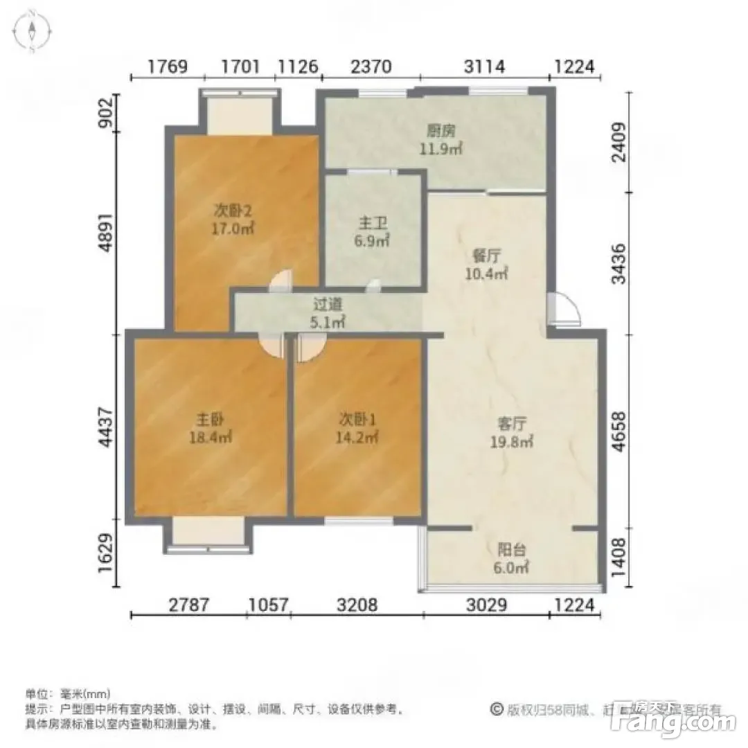 1室1厅/56.92㎡