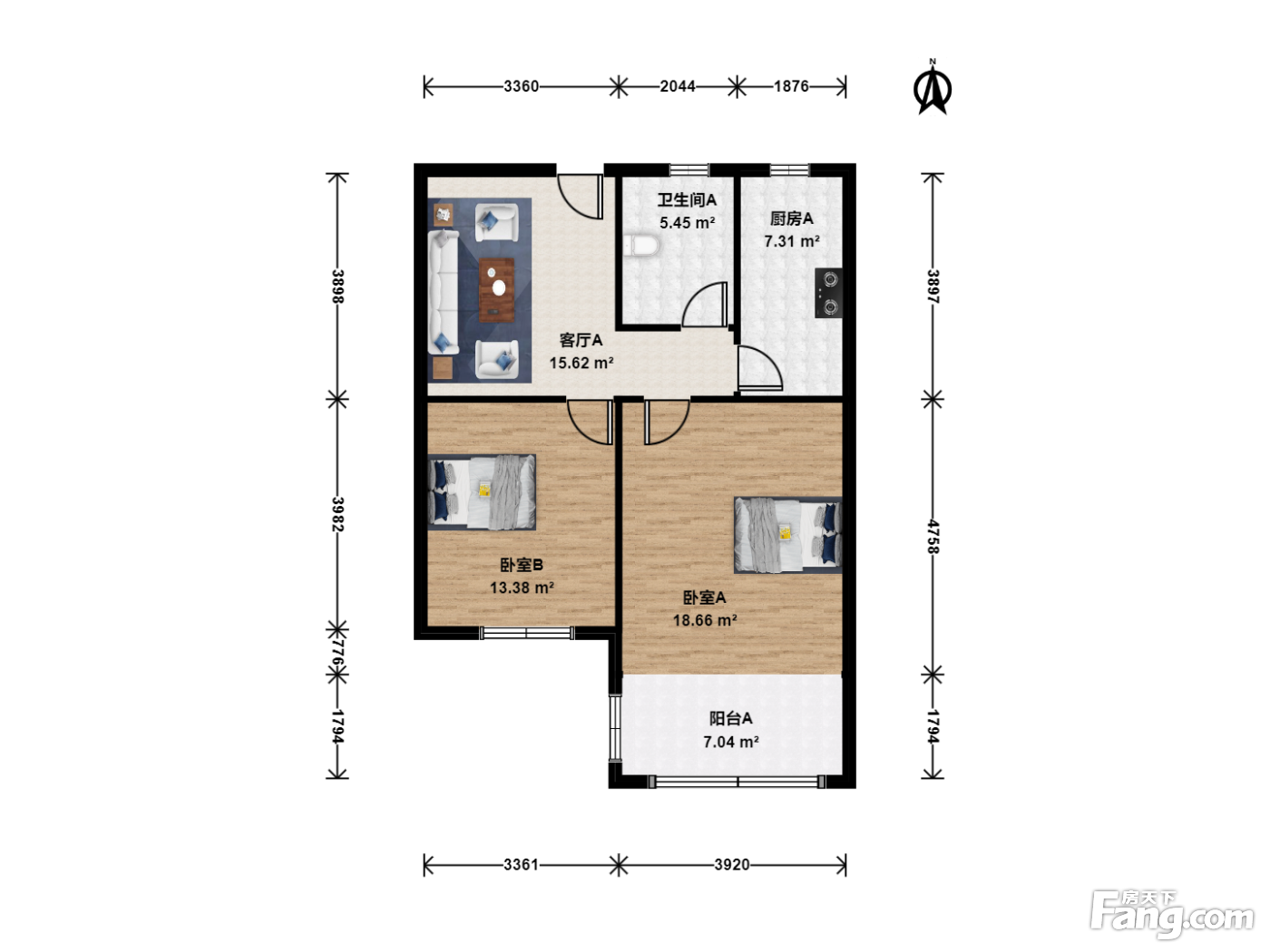 2室2厅/77.0㎡