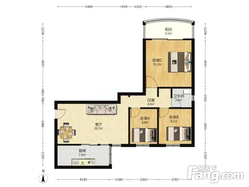 2室1厅/55.11㎡