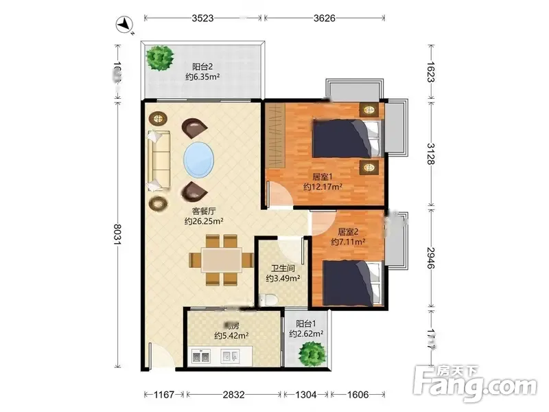 2室2厅/77.49㎡