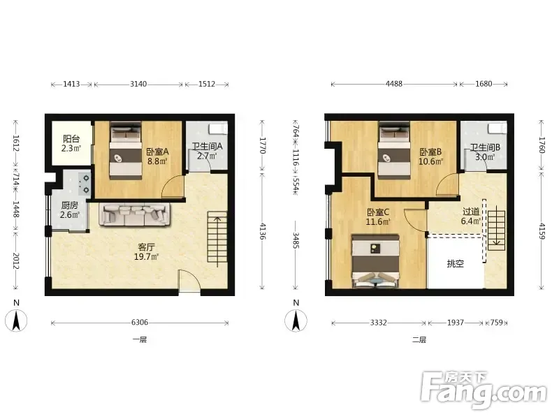 2室2厅/52.93㎡