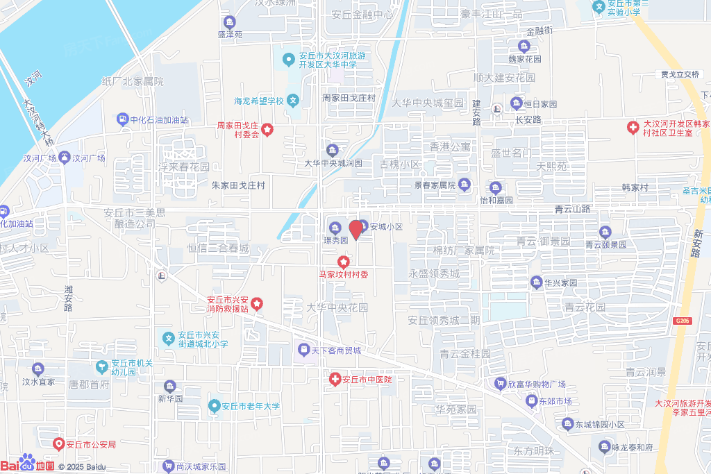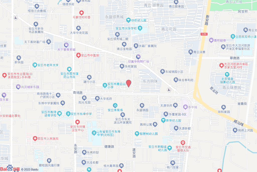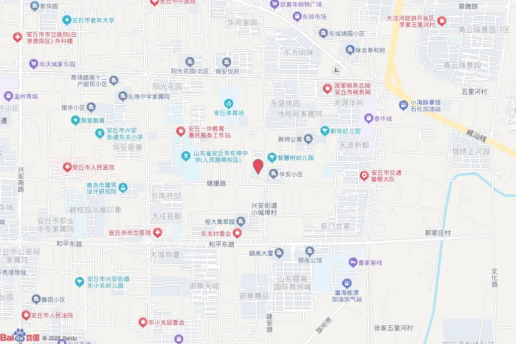 人民路北侧。东至安丘市人民政府